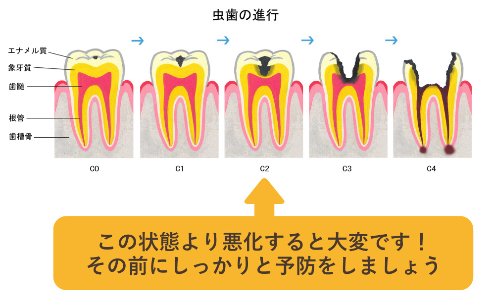 歯ぎしりは体重ほどの力が歯にかかり続けると言われており、歯や歯周組織の破壊、さらに顎関節への大きな負担となります。顎に負担がかかるため顎関節症の原因ともなっています。